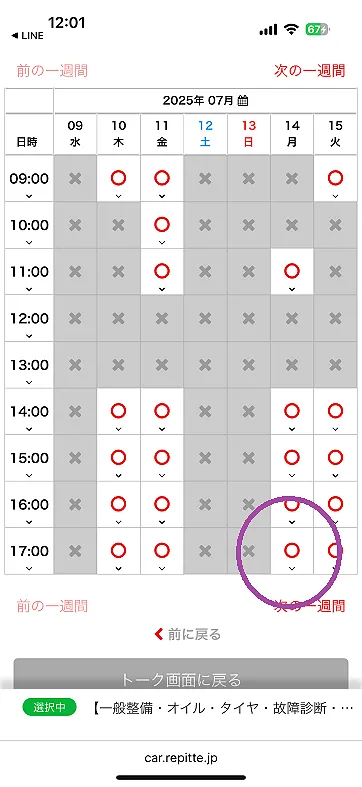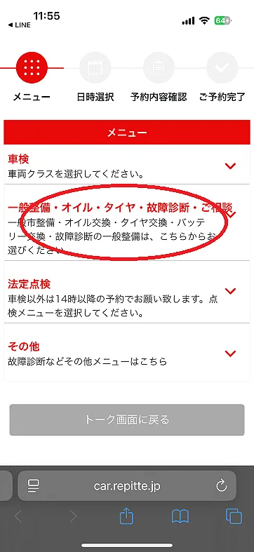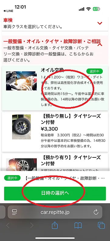 オイル交換の選択をして、日時の選択をクリックして下さい。