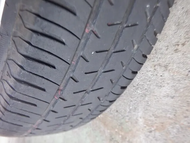 タイヤの点検を実施し、残溝は フロント 2.9 mm、 リヤ 2.9 mmで50%くらいの状態でした。