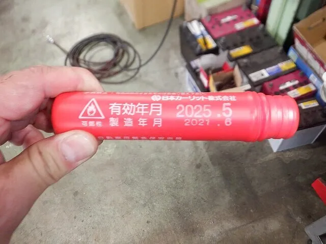 発煙筒は道路運送車両法により車載が義務付けられており、有効期限が設けられています。
