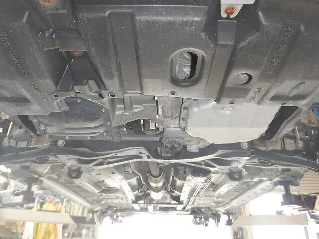 下廻り点検致しました。【下廻りフロント側】【下廻りリヤ側】 車検時の下廻り点検は、自動車の安全性や耐久性を確保するために欠かせない重要な作業です。