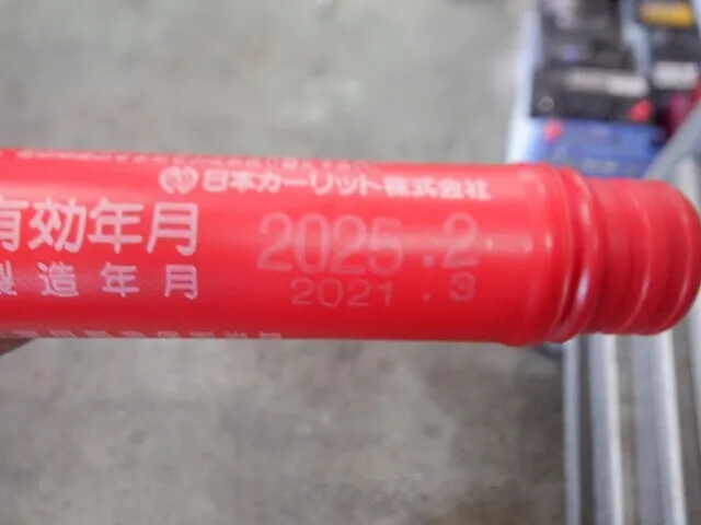 発煙筒の有効期限を点検・交換。発煙筒の有効期限を点検・交換いたしました。【否→取替】