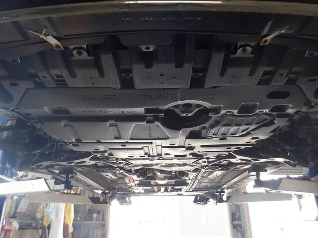 下廻り点検致しました。【下廻りフロント側】【下廻りリヤ側】車検時の下廻り点検は、自動車の安全性や耐久性を確保するために欠かせない重要な作業です。