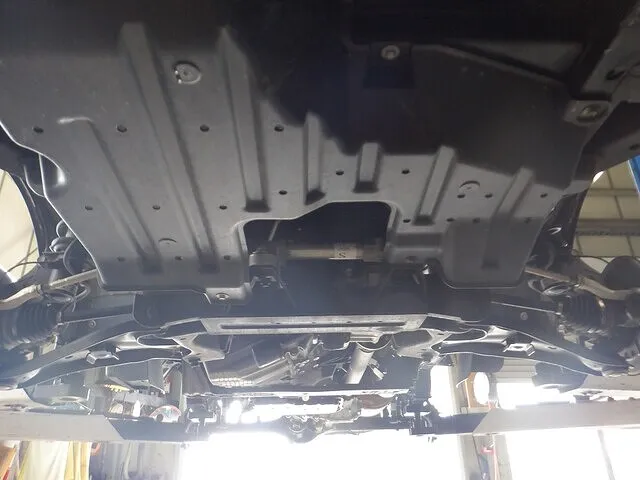 下廻り点検致しました。【下廻りフロント側】【下廻りリヤ側】車検時の下廻り点検は、自動車の安全性や耐久性を確保するために欠かせない重要な作業です。