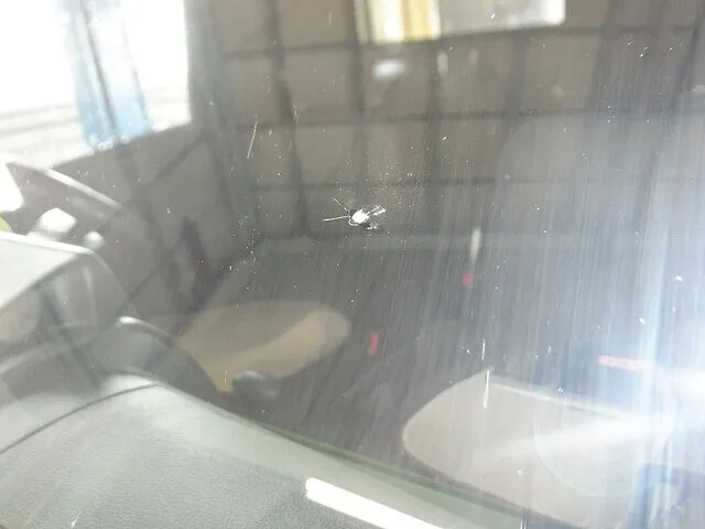 自動車のフロントガラスに小さな飛び石キズが確認されたため、ガラスリペアーを実施しました。