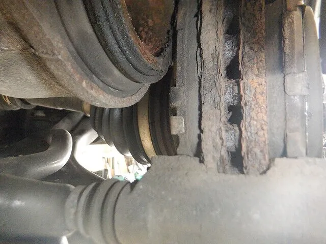 ドライブシャフトやプロペラシャフトのブーツ破れ、グリス漏れ、ガタも点検項目です。