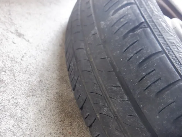 空気圧の調整、製造年週(2022年30週)【良】ゴムの硬化具合、変摩耗の有無などを総合的に点検しました。