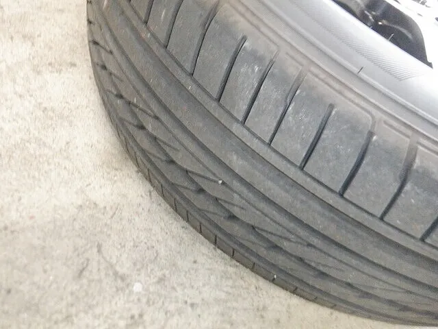 空気圧の調整、製造年週(2024年4週)確認。【良】ゴムの硬化具合、変摩耗の有無などを総合的に点検しました。