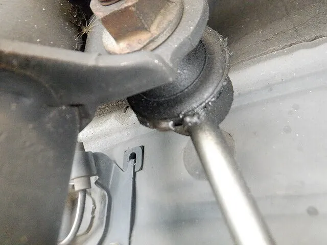 スタビライザーリンクブーツが破れると、内部のグリスが漏れ出し、代わりに雨水や砂、ホコリなどが侵入します。その結果、リンク内部のボールジョイントが錆びたり摩耗したりして、ガタつきが発生する恐れがあります。このガタが進行すると、段差やカーブで異音(コトコト音・ガタガタ音)が出たり、走行中の安定性が低下したりすることがあります。最悪の場合、リンクが破損しスタビライザーが正常に機能しなくなると、車体のロールが大きくなり、操縦安定性が大きく損なわれる可能性があります。早期の点検・交換が安全維持には重要です。