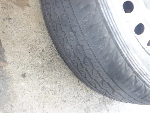溝以外でも亀裂があれば注意が必要になります。ゴムの硬化具合、変摩耗の有無などを総合的に点検しました。