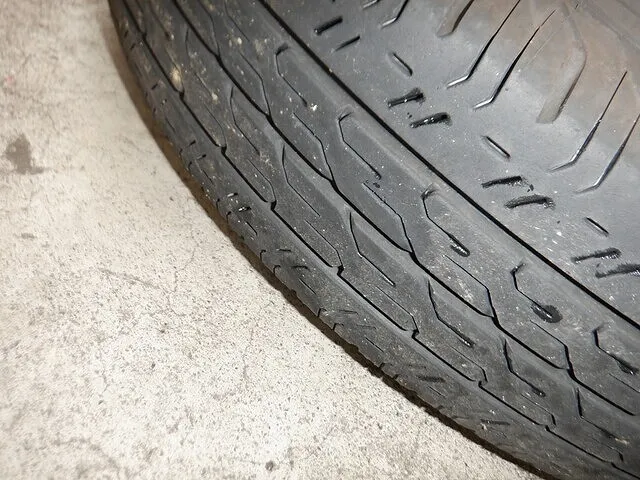 溝以外でも亀裂があれば注意が必要になります。ゴムの硬化具合、変摩耗の有無などを総合的に点検しました。【良】