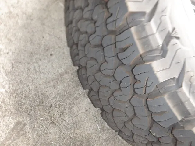 溝以外でも亀裂があれば注意が必要になります。ゴムの硬化具合、変摩耗の有無などを総合的に点検しました。