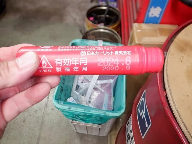 発煙筒の有効期限を点検・交換いたしました。 【否→取替】