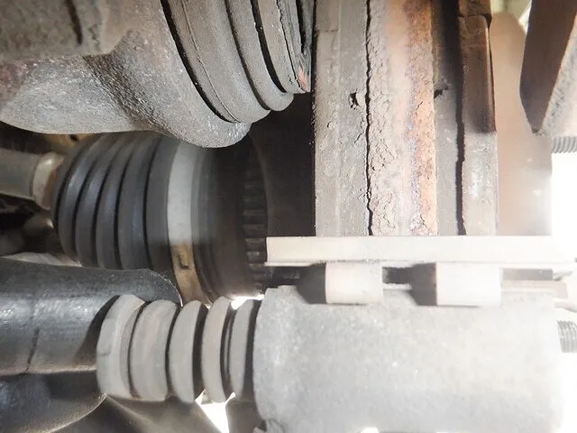 ブレーキローターやドラムの摩耗や傷、変形の有無を確認します。
