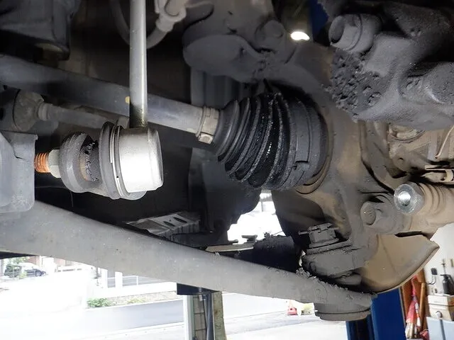 ドライブシャフトやプロペラシャフトのブーツ破れ、グリス漏れ、ガタも点検項目です。