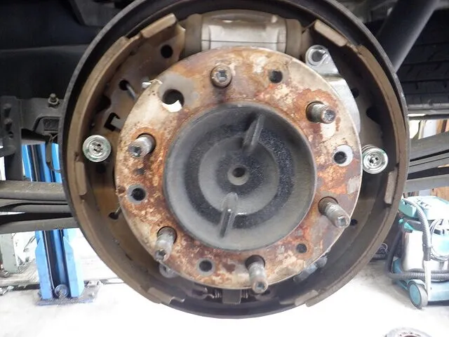 リヤブレーキ点検・清掃・給油・調整いたしました。