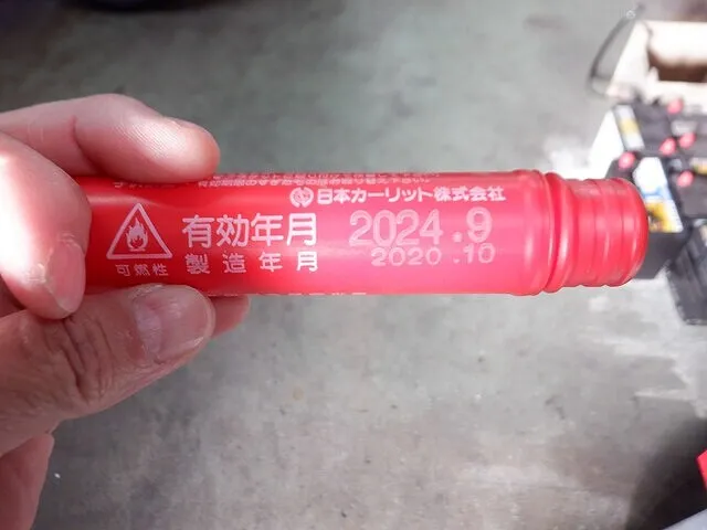 発煙筒の有効期限を点検・交換。発煙筒の有効期限を点検・交換いたしました。 【否→取替】