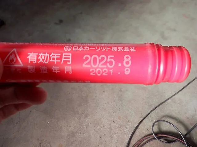 発煙筒の有効期限を点検・交換。発煙筒の有効期限を点検・交換いたしました。 【否→取替】