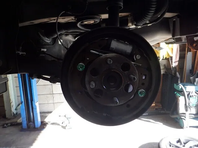 作業では、ブレーキドラム(またはディスク)を取り外し、ハブユニットを車体から分解します。固着や錆の状態を確認しながら慎重に取り外し、新品のハブベアリングを規定トルクで確実に組み付けました。組み付け後は、ブレーキ部品の復元、回転状態の確認を行い、最終的に試運転を実施しました。